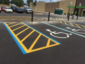 Sealcoating is a cost-effective alternative to new asphalt while protecting your investment. Asphalt sealcoating rejuvenates existing asphalt, slows oxidation, and prevents future cracks. We exclusively use high-quality poly-tar material, a top-of-the-line product with strict formula requirements. Our product selection and application technique provide maximum performance and durability. Line marking services include parking spaces and ADA-compliant handicap areas. We can accommodate any marking or signage request.
